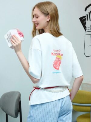 Женская футболка силуэта оверсайз из трикотажной хлопковой кулирки — это комфортная и стильная модель, идеально подходящая для повседневного гардероба.
