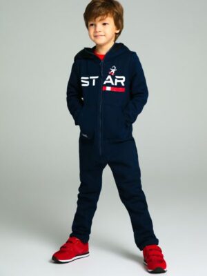 Комбинезон из футера с начесом. Застежка на молнию, защитная планка и текстильный клапан. Карман-кенгуру. Декор в виде очков. PLAYTODAY