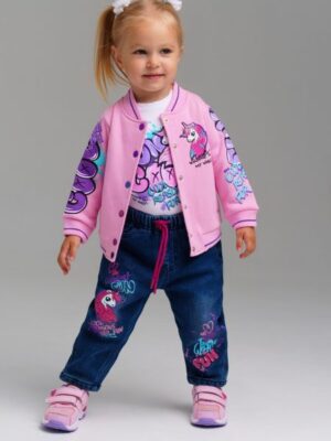 Джинсы детские с флисом для девочки. Модные утепленные джинсы comfort fit (свободная посадка) на резинке со шнурком. Боковые карманы. Модель из капсульной