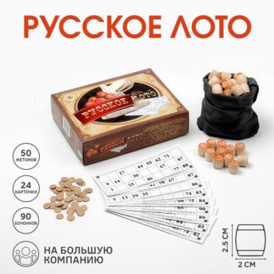Русское лото деревянное «Пока все дома», 24 карточки, 90 бочонков, 50 фишек. Игра Русское лото – настольная игра для всей семьи! Играть могут от 2 до 6 человек.