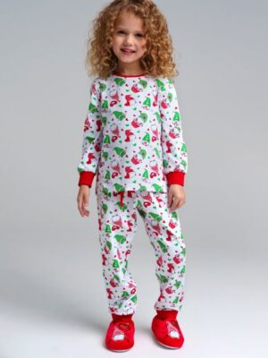 Пижама: лонгслив, брюки. Эластичные манжеты. Эластичный пояс с тесьмой позволяет легко надевать брюки и утягивать до комфортной посадки.