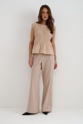 Брюки палаццо с высокой талией из натурального высококачественного хлопка, подойдут для создания непринужденного городского или домашнего образа.