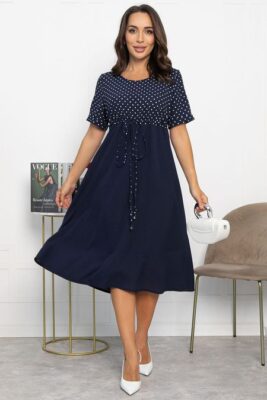 Состав : 100% полиэстер <br> Материал : креп-стрейч <br> Цвет : Синий <br> Принт : лиф платья в белый горох <br>