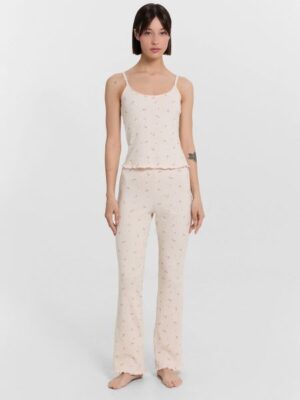 Женский домашний комплект из хлопковой рибаны — это гармоничное сочетание комфорта, женственности и практичности. Топ прилегающего силуэта на тонких бретелях
