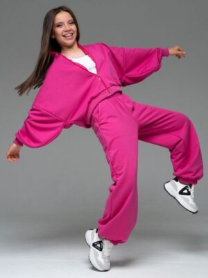 Широкие брюки из футера(3х нитка) сиреневого(фуксия) цвета свободного силуэта с карманами в боковых швах и резинкой по низу. Трико спортивное сшиты из
