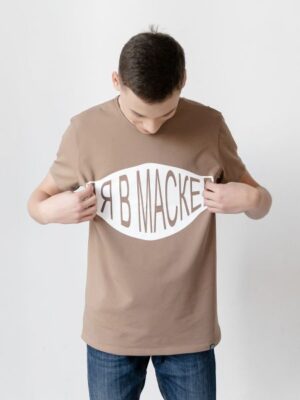 Футболка мужская из кулирки мокко цвета свободного силуэта с короткими рукавами,круглая горловина обработана бейкой. Изделие выполнено из трикотажа премиального