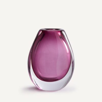Подобно капле цветной воды в прозрачном корпусе, эта ваза из толстого выдувного стекла с плавными, органичными линиями заставляет цвет вибрировать, излучая