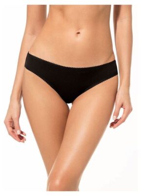 Brasilian slip — трусики бразилиано, из гладкого хлопка спереди и полностью кружевные сзади, по верху декорированы кружевной тесьмой, со средней посадкой.