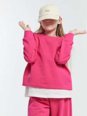 Комплект для девочек из трикотажного футера с нежным и теплым подчесом. Джемпер свободного силуэта, с углубленной проймой, длинными рукавами на манжетах