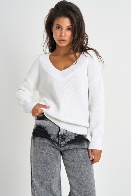Силуэт: свободный<br> Линия плеча: спущенная<br> Длина и вид рукава: длинный втачной на манжетеоколо 62 см<br> Тип горловины: V-образный вырез оформлен плотной резинкой<br> Длина изделия: 65 см.<br> Параметры модели: 83-61-89<br> Рост модели на фото: 171 см<br> Размер модели на фото: 44-46 р-рДжемпер вязаныйсвободного силуэта вырез горловины манжеты на рукавах и низ изделия выполнены плотной вязкой.Внимание: изделие Oversize (предполагается свободная широкая посадка) если вы предпочитаете классическое облегание то рекомендуем выбрать меньший размер!