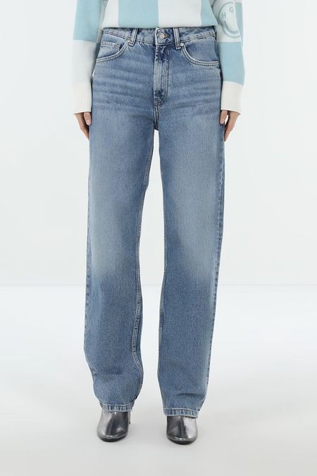 Джинсы с эффектом потертости прямого кроя HUGO