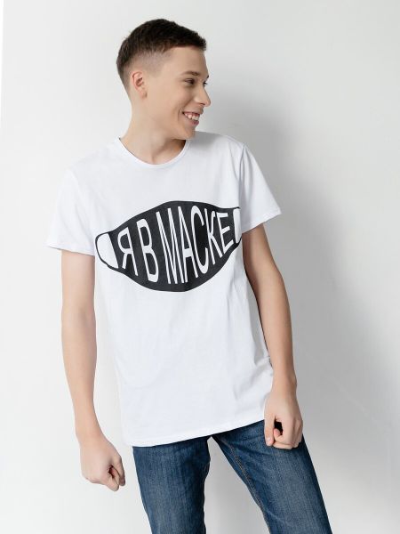 Футболка мужская из кулирки белого цвета свободного силуэта с короткими рукавами,круглая горловина обработана бейкой. Изделие выполнено из трикотажа премиального качества — ПЕНЬЕ, с содержанием хлопка более 95%