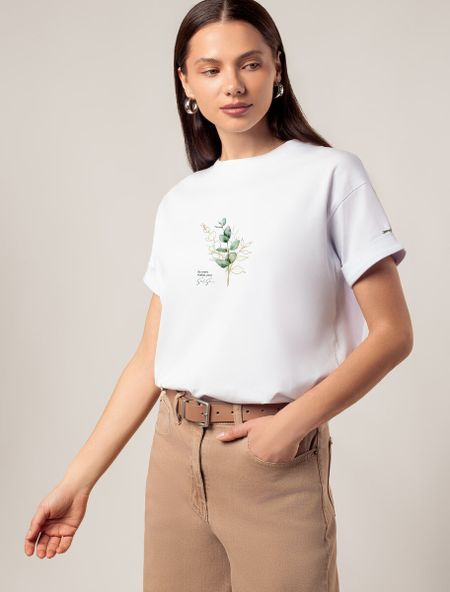 Перевод принта: do what makes your soul shine — делай то, что заставляет тебя сиять.<br> Футболка из премиального хлопка, высокое качество хлопковых волокон обеспечивает комфорт в любое время года. Горловина выполнена из рибаны в тон изделия, Рукава с подворотами и золотистым логотипом бренда. Авторский принт нанесен фактурными красками и фольгой с устойчивым покрытием. За счет эластана в составе идеально держит форму и сохраняет внешний вид в течение долговременного использования. Универсальная вещь для ваших стилистических решений.