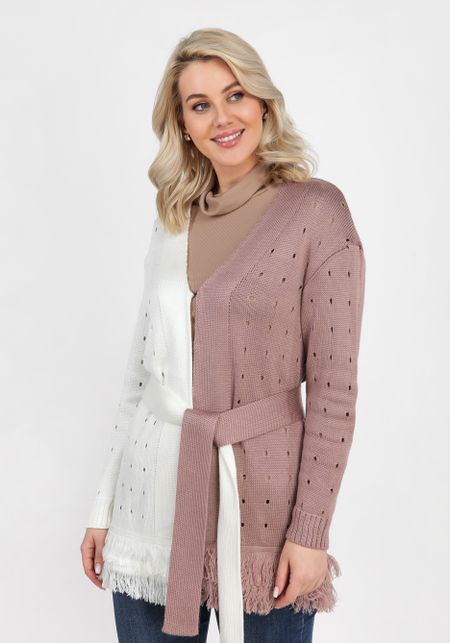 Кардиган с бахромой и поясом