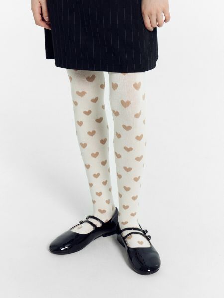 Колготки детские в молочно-белые с рисунком в виде сердечек