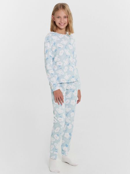 Уютная пижама для девочек включает джемпер с длинными рукавами и брюки, создавая идеальный наряд для сна и отдыха в прохладное время года. Джемпер свободного силуэта с круглой горловиной и длинными рукавами с манжетами обеспечивает уют и свободу движений. Брюки прямого кроя также имеют манжеты, а пояс с эластичной тесьмой гарантирует отличную посадку и комфорт. Изделие выполнено из хлопка интерлок — это материал, который отличается высокой плотностью и прочностью, но при этом остается мягким и приятным к телу. Интерлок прекрасно сохраняет тепло, что делает его идеальным для холодного времени года, и обеспечивает отличную воздухопроницаемость, позволяя коже дышать.