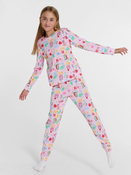 Уютная пижама для девочек включает джемпер с длинными рукавами и брюки, создавая идеальный наряд для сна и отдыха в прохладное время года. Джемпер свободного силуэта с круглой горловиной и длинными рукавами с манжетами обеспечивает уют и свободу движений. Брюки прямого кроя также имеют манжеты, а пояс с эластичной тесьмой гарантирует отличную посадку и комфорт. Изделие выполнено из хлопка интерлок — это материал, который отличается высокой плотностью и прочностью, но при этом остается мягким и приятным к телу. Интерлок прекрасно сохраняет тепло, что делает его идеальным для холодного времени года, и обеспечивает отличную воздухопроницаемость, позволяя коже дышать.