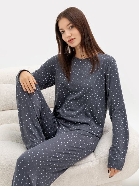 Удобная пижама женская с брюками и джемпером с длинным рукавом — лучший вариант одежды для дома из высококачественного материала. Джемпер с круглым вырезом, длинными рукавами. Брюки прямые, с эластичной тесьмой в поясе. Размерный ряд позволит подобрать модель для любого типа фигуры. Пижама женская легкая и эластичная, имеет деликатные швы. Не линяет при стирке и не деформируется. Такая одежда дарит незабываемый комфорт и уют. Красивые, актуальные цвета порадуют представительниц прекрасного пола. Подойдет как красивая домашняя одежда для беременных для сна, отдыха и домашних дел. Порадуйте модными новинками от Mark Formelle родных и близких!