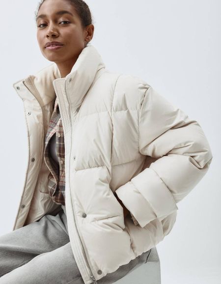 Короткая дутая куртка с натуральным наполнителем из пуха и пера