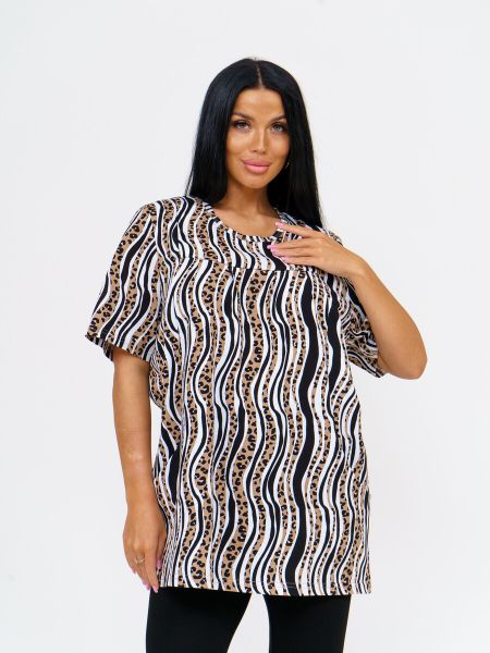<div>Костюм женский из комбинированного трикотажного полотна, состоящий из бридж — (хлопковое полотно с лайкрой) и туники (100% хлопок). Туника свободного силуэта длинной чуть ниже уровня бедер с отрезной кокеткой и карманами. Вырез горловины О-образный. Бриджи из однотонного трикотажного полотна длинной ниже уровня колена.<br> Верх:<br> Длина по спинке – 75 см, длина рукава 25 см<br> Низ:<br> Длина по боковому шву — 77 см<br> Материал – верх – кулирка, низ – кулирка с лайкрой, плотность 145 г/м2<br> Уход – стирка – 30, глажка – 150, отбеливание запрещено, химчистка запрещена.</div>