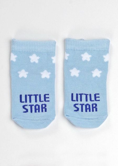 Детские ясельные носки из хлопкового полотна с добавкой полиамида и эластана. Прочная и эластичная ткань приятна для тела, прекрасно пропускает воздух, впитывает воду, не электризуется и подходит для чувствительной кожи. Добавка в носки полиамида повышает прочность, а эластана придает им дополнительную эластичность. <br> Мягкие носки со звездным рисунком и текстовым принтом прекрасно подходят для повседневного использования и активного отдыха. <br> Рекомендуется стирать при температуре до 40 градусов.<br/><br/><b>Выбор конкретных цветов и моделей не предоставляется. На фотографиях могут быть представлены не все варианты</b>