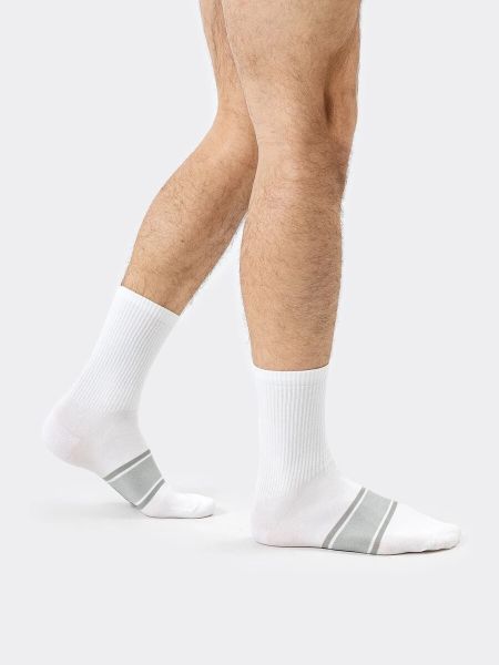 Носки мужские классические высокие с плотным бортом и рисунком в виде полосок на следу. Длинные мужские носки изготовлены из гребенного хлопка — пряжи высочайшего качества, мягкой, тонкой, но прочной. Натуральные волокна отлично пропускают воздух, позволяя коже дышать, и впитывают влагу, дарят ощущение комфорта в течение всего дня. Благодаря небольшому количеству эластана в составе, носки хорошо облегают стопу и сохраняют форму даже после множества стирок. Мягкая эластичная резинка надежно удерживает носки на ноге, но не давит. Пятка и мысок дополнительно усилены, что гарантирует защиту от протирания и повышенную износостойкость — мужские носки с принтом прослужат долго. Купите мужские носки от Mark Formelle для создания стильных и гармоничных образов. Отличный выбор на каждый день. Рекомендуем!