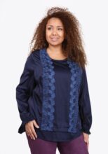 Блуза с кружевной отделкой и рюшей на манжете