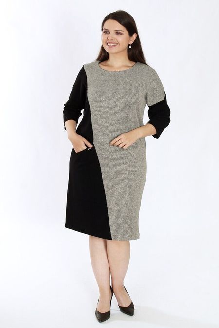 <div>Платье свободного силуэта выполнено из ткани двух контрастных цветов. Линия плеча спущенная. Длина рукава 3/4. Тип горловины круглый вырез. По переду один объемный карман. Ткань плотная, гладкая, эластичная. Прекрасно держит форму. Внешняя поверхность абсолютно ровная матовая. Ткань-компаньон имеет люрексовую нить. Красивое платье от AhaLodensa для базового гардероба. Весенняя коллекция.</div>