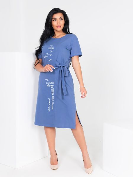 Главная » Одежда Платье Просмотров 8 Платье женское полуприлегающего силуэта. Боковая вставка оформлена бантом, рукав короткий, вырез горловины круглый, в боковых швах платья разрезы. BROSCO