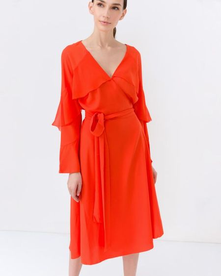 <html> <head></head> <body> <ul> <li>V-образный вырез</li> <li>Пояс в комплекте</li> <li>Модный дизайн</li> <li>Фантазийные рукава</li> </ul> <p>Эффектное платье с V-образным вырезом и фантазийными рукавами. В комплекте пояс.</p> <p>Если у вас остались вопросы, вы можете написать нам в Telegram: <a href="https://t.me/ShoppingLive_9671117811_bot">8-967-111-7811</a>.</p> </body></html>