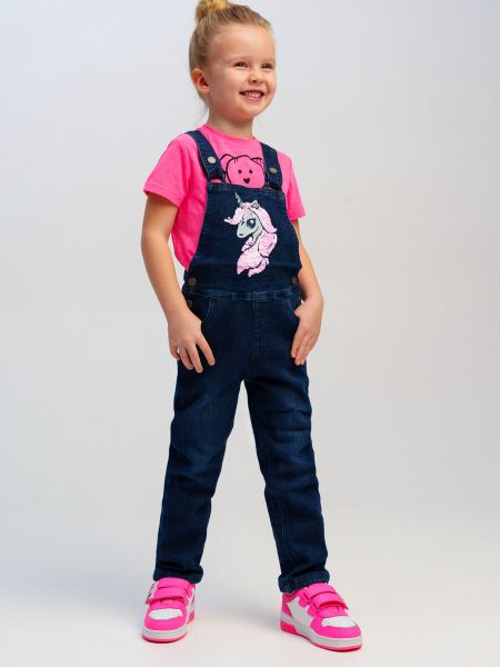 Джинсовый детский комбинезон comfort fit (свободная посадка) для девочки. Модный джинсовый комбинезон на кнопках утепленный флисом. Модель из капсульной коллекции UNICORN KUROMI (ЮНИКОРН КОРОМИ). Соберите полный образ в едином стиле! Комбинезон будет актуален для детского сада, в садик.