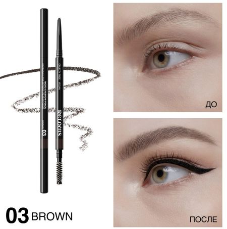 RELOUIS Карандаш для бровей ультратонкий тон 03 brown. НОВЫЙ УРОВЕНЬ МАКИЯЖА ВАШИХ БРОВЕЙ Ультратонкий треугольный стержень создает тончайшие штрихи, которые позволяют имитировать натуральный волос. Идеален для заполнения цветом менее густых участков бровей. Форма грифеля делает продукт многофункциональным: плоская сторона карандаша подходит для прорисовки формы, быстрого и легкого заполнения бровей цветом, заостренная – для тонких штрихов, имитирующих волоски Автоматический карандаш не требует затачивания: всегда готов к использованию Удобная щеточка для комфортной растушевки и максимально естественного эффекта Идеальная текстура средней мягкости позволяет легко прорисовать волоски, сохраняя натуральный вид бровей Формула содержит синтетический воск, который предотвращает ломкость грифеля Устойчив к воде, легко выдержит дождь или пробежку Карандаш не тестируется на животных, vegan friendly Три универсальных натуральных оттенка для девушек всех типов внешности 01 BLONDE – универсальный светлый блондин 02 TAUPE – универсальный нейтральный русый и брюнет 03 BROWN – универсальный насыщенный брюнет Способ применения: легкими штрихами прорисуйте форму брови и волоски, плоской стороной грифеля заполните бровь цветом, после прочешите брови щеточкой для натурального эффекта СОСТАВ: Hydrogenated Vegetable Oil, Hydrogenated Rapeseed Oil, Boron Nitride, Cetearyl Methicone, Hydrogenated Palm Oil, Vinyl Dimethicone/ Methicone Silsesquioxane Crosspolymer, C10-18 Triglycerides, Synthetic Japan Wax, Zinc Stearate, Triethoxycaprylylsilane, Sucrose Polystearate, Tocopherol, Lecithin, Ascorbyl Palmitate, Glyceryl Stearate, Glyceryl Oleate, Citric Acid, [+/-]: CI 77492, CI 77499, CI 77491, CI 77891, CI 19140, CI 42090, CI 16035.