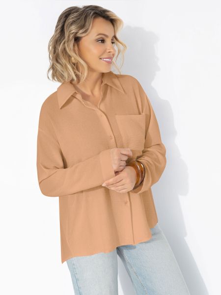 Основа безупречного гардероба от ЧАРУТТИ. Рубашка, которую можно накинуть поверх купальника на пляже, сочетать с прямыми брюками для офиса или носить с джинсами на прогулке. Теплый оттенок сливается с любым образом, как финальный аккорд в идеальной мелодии стиля. Рубашка свободного кроя. Хорошо смотрится на любом типе фигуры. Накладной карман по передней части изделия. Есть треугольный вырез по верхней части спинки изделия. Дополнен металлическим аксессуаром в виде цепи. Рубашка хорошо смотрится в заправленном виде и навыпуск.