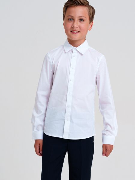 Белая школьная рубашка с длинным рукавом — настоящая база гардероба! Классическая рубашка выполнена из ткани супер стрейч, что очень удобно для мальчика подростка. Стрейч ткань ценится за возможность пошива моделей, идеально садящихся по фигуре ребенка. Рубашка на кнопках ускоряет сборы по утрам и переодевание, поэтому будет отличным решением для школы, как на каждый день, так и для торжественных случаев. Сорочка может быть дополнена стильным галстуком или бабочкой для создания завершенного образа в школу. Строгая, лаконичная, элегантная рубашка создаст ребенку учебный настрой.