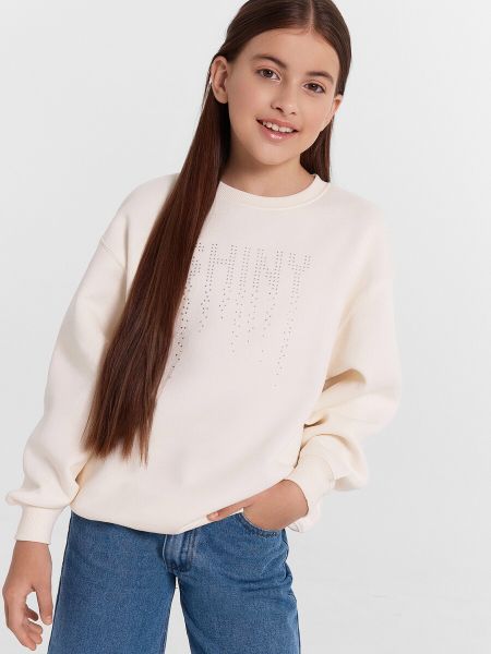 Свитшот для девочек кремовый со стразами