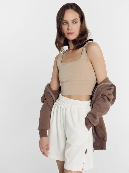Топ женский облегающего силуэта с широкими бретелями. Изготовлен из высококачественного хлопка. Вырез горловины – «каре». По нижнему срезу проходит широкий пояс из основного полотна. Бретели и горловина окантованы бейкой из основного полотна. Удобный и невероятно комфортный вариант для спортивных девушек. Дополнить можно велосипедками, шортами или легинсами. Размерный ряд широкий. Лучшее решение для занятий в зале, бега и фитнеса!