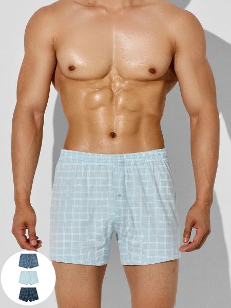 Трусы шорты мужские в клетку в наборе, 3 шт