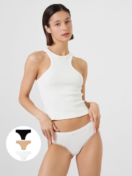 Стильный набор (мультипак) женских трусиков слипов (3 шт.) разных цветов из высококачественного хлопка — популярная модель женского белья. Невероятно удобные, благодаря своей невысокой посадке, они пользуются заслуженной любовью покупательниц. Изготовлены из натурального материала, дышащего, мягкого, гипоаллергенного — идеального для повседневной носки. По поясу и ножкам — нежная кружевная лента. Помимо длительного и полного ощущения комфорта, материал отличается долговечностью и сохраняет вид даже после многочисленных стирок. Цвет трусиков останется ярким, рисунок не поблекнет и долго будет радовать вас. Продуманная анатомическая конструкция, плоские швы и деликатные резиночки делают эту модель подходящей для спорта и на каждый день. Рекомендуем!