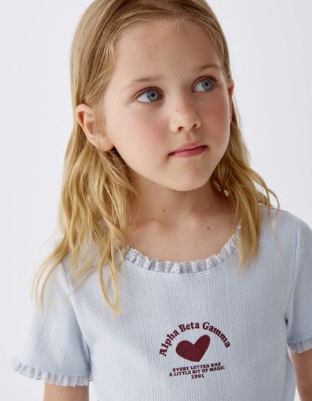 Укороченная футболка с принтом для девочек