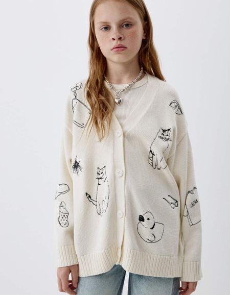Вязаный кардиган с жаккардовым принтом для девочек