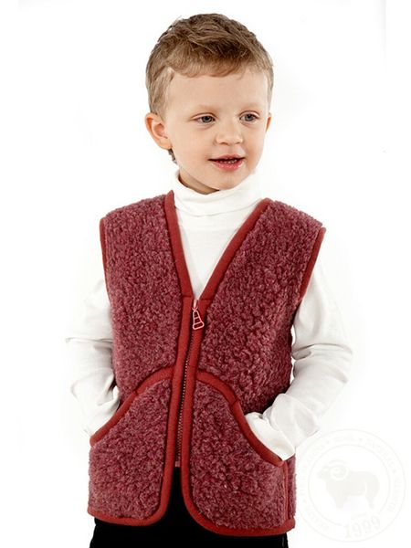 Детский жилет из 100% овечьей шерсти.<br> <br> Эта вещь абсолютно не стесняет движений, что очень важно, так как дети много двигаются в течение целого дня. Изготовлен из натурального экологичного материала — шерсти мериноса. Мягкий, удобный жилет доставит радость Вам и Вашим детям!<br> <br> Натуральная овечья шерсть обладает лечебными качествами: увеличивает сопротивляемость организма к простудным заболеваниям, нормализует давление и сон, помогает расслабиться и устранить усталость, положительно влияет на нервную систему.<br> Это — веками проверенный, прекрасный утеплитель, сочетающий в себе доступность и практичность.