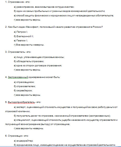ИТОГОВЫЙ ЭКЗАМЕН "Страхование" Региональный финансово - экономический институт.