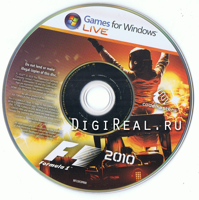 Лицензионный скан ключа активации из коробки с игрой Formula 1 2010 от компании "Бука" для активации в системе Windows Live.