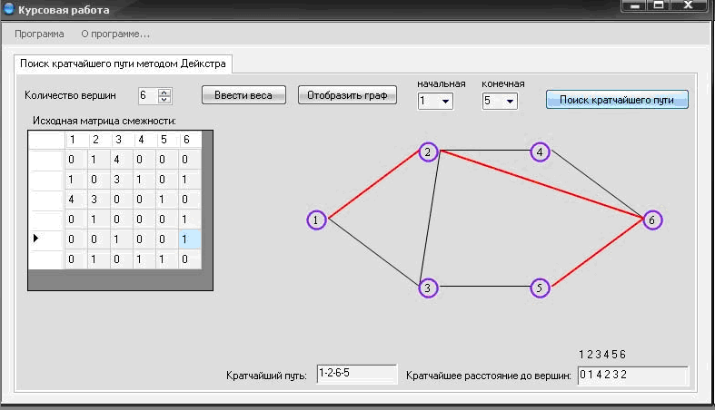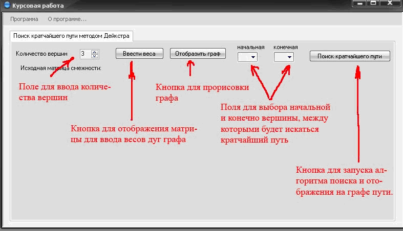 2. После вывода заставки управление передаётся главному окну про-граммы, на котором будет производится ввод данных для формирования графа и отображение результатов работы программы.