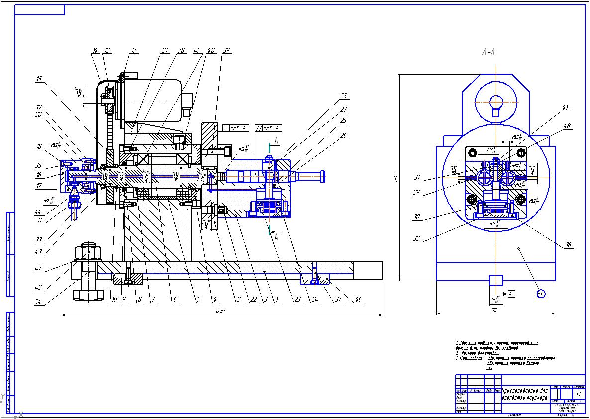 В курсовую работу входит:4 чертежа(формат А1):Станочное приспособление, контрольное приспособление, схема сборки , схема наладки.