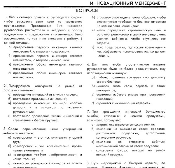 Итоговый экзамен "ИННОВАЦИОННЫЙ МЕНЕДЖМЕНТ". Региональный финансово - экономический институт.