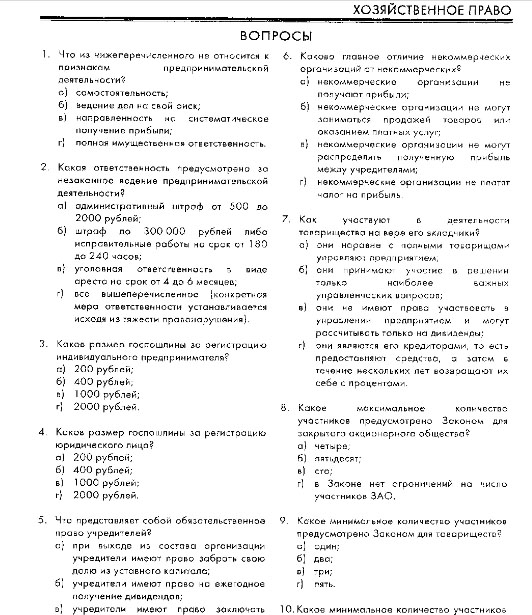 Итоговый экзамен "ХОЗЯЙСТВЕННОЕ ПРАВО". Региональный финансово - экономический институт.