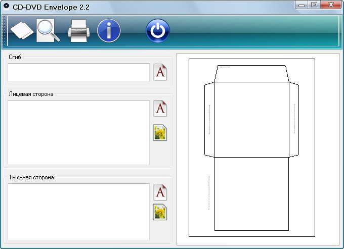 Конверты для CD или DVD дисков являются самым популярным и дешевым видом упаковки. Они позволяют не только сохранить диски неповрежденными но и компактно их хранить. С помощью нашей программы вы сможете самостоятельно изготавливать такие конверты, снабжая их надписями и даже графическими изображениями. Простота работы с программой делает CD-DVD Envelope НЕЗАМЕНИМОЙ для владельцев компакт и DVD дисков.