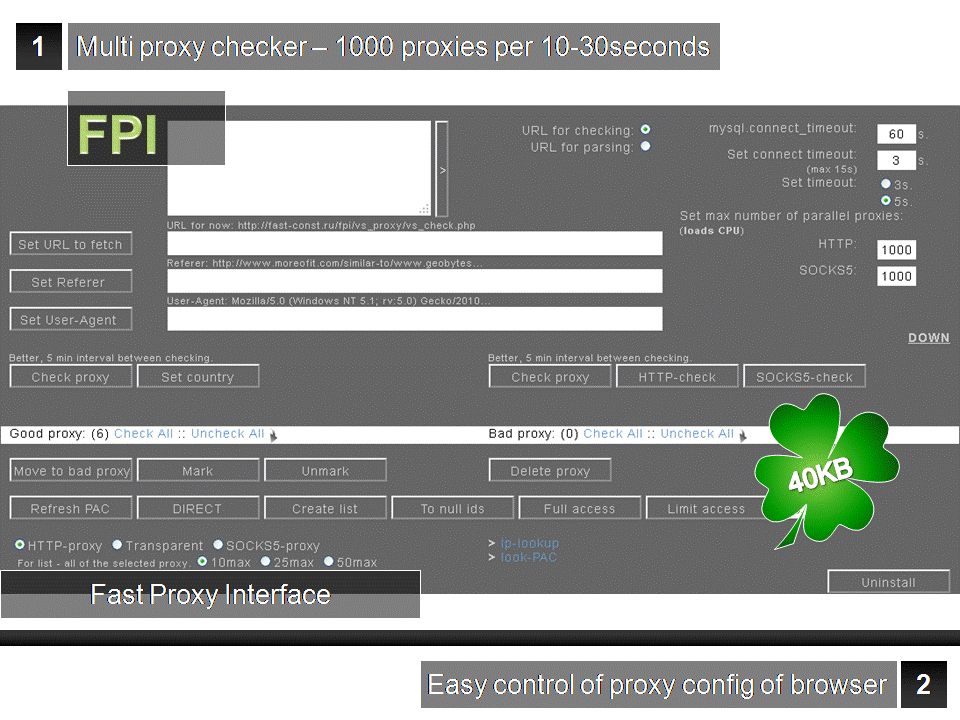 > 1000 прокси за 10-30сек в зависимости от процессора