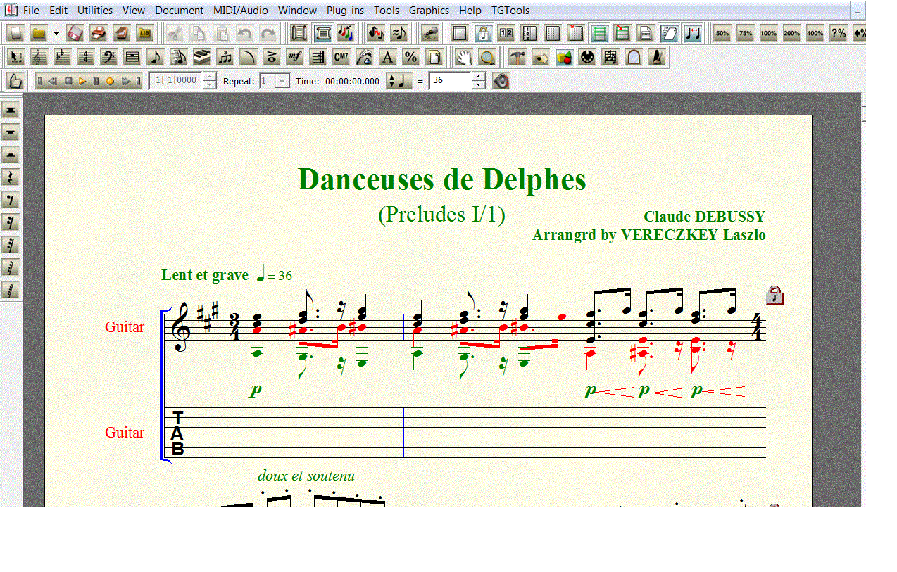 Переложение пьесы Клода Дебюсси DANCEUSES DE DELPHES для 6-ой гитары.